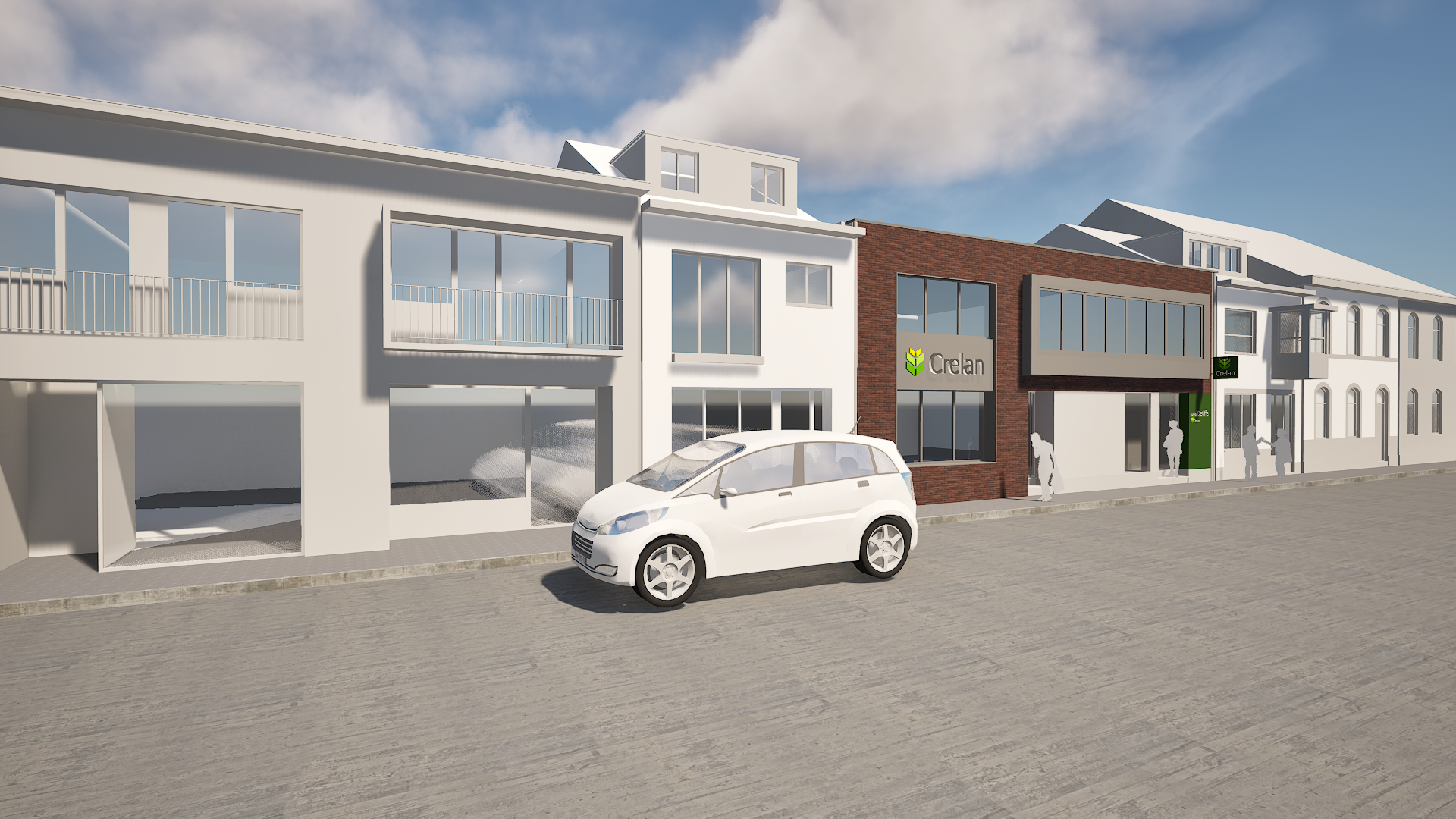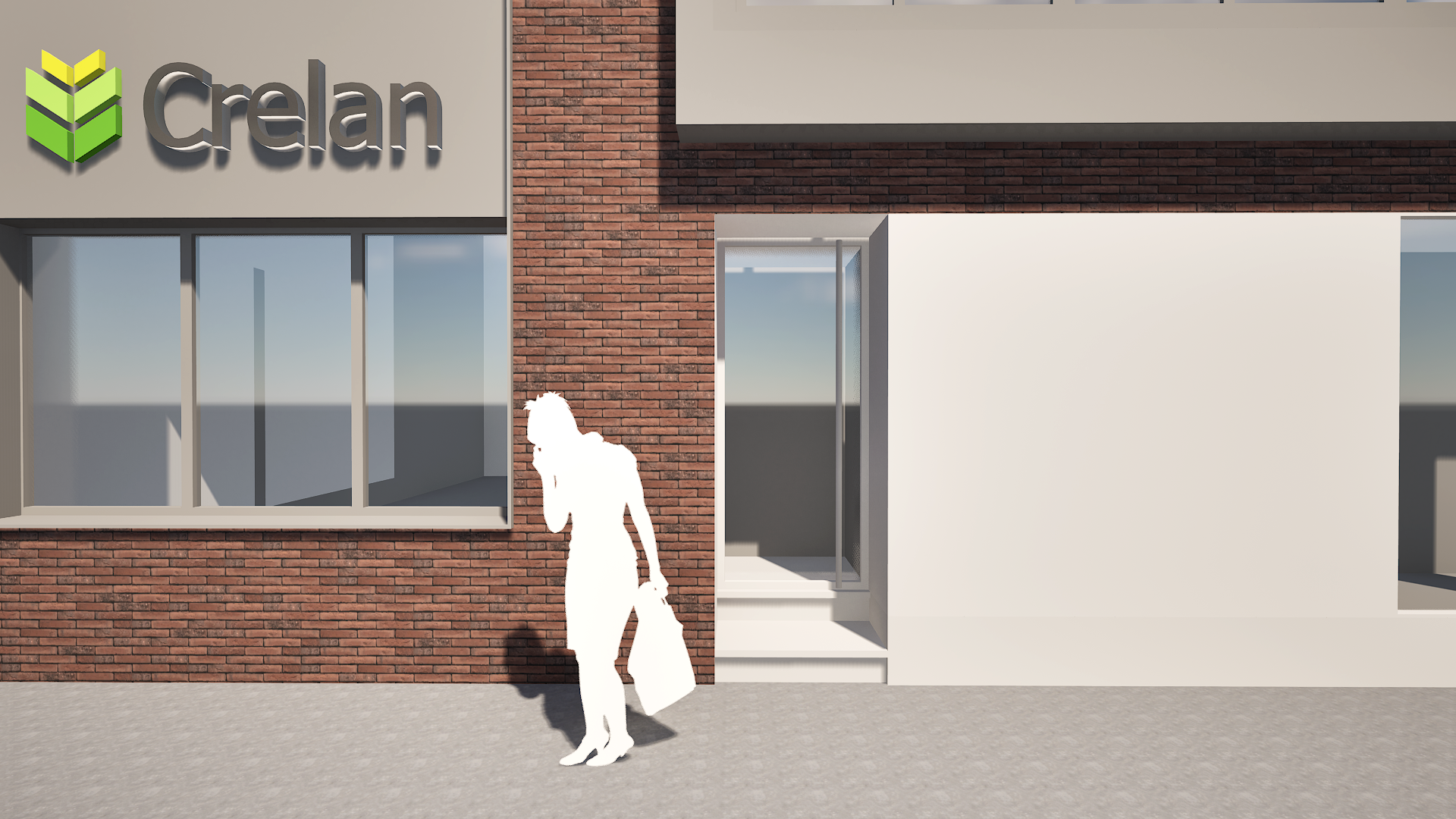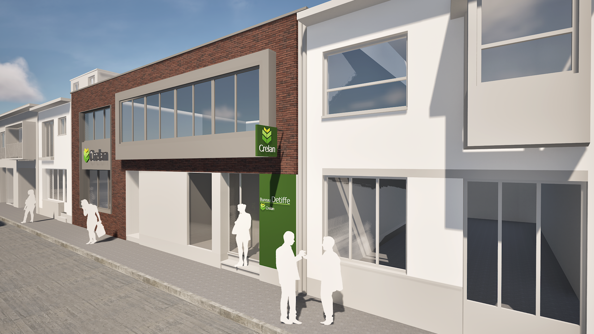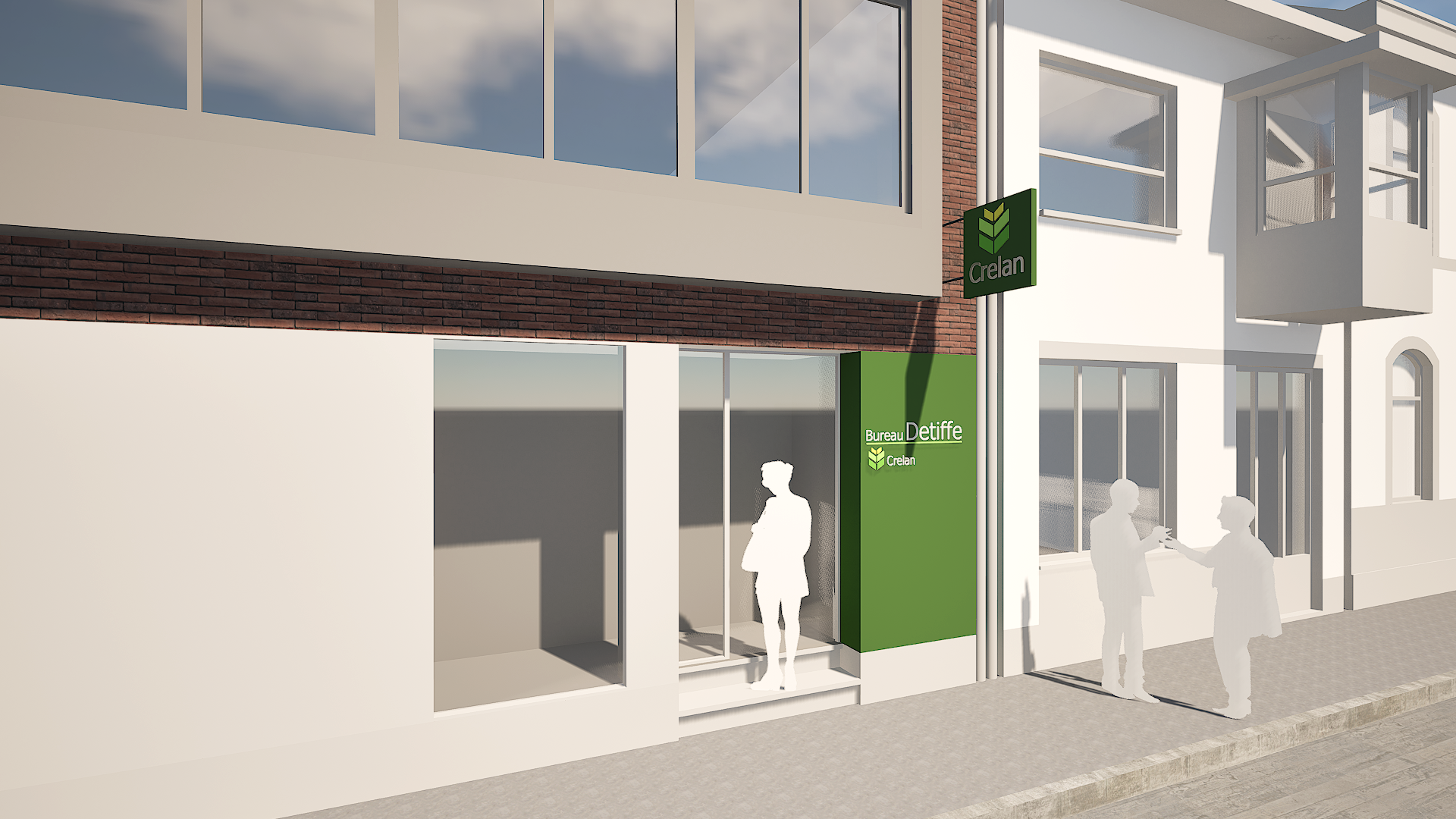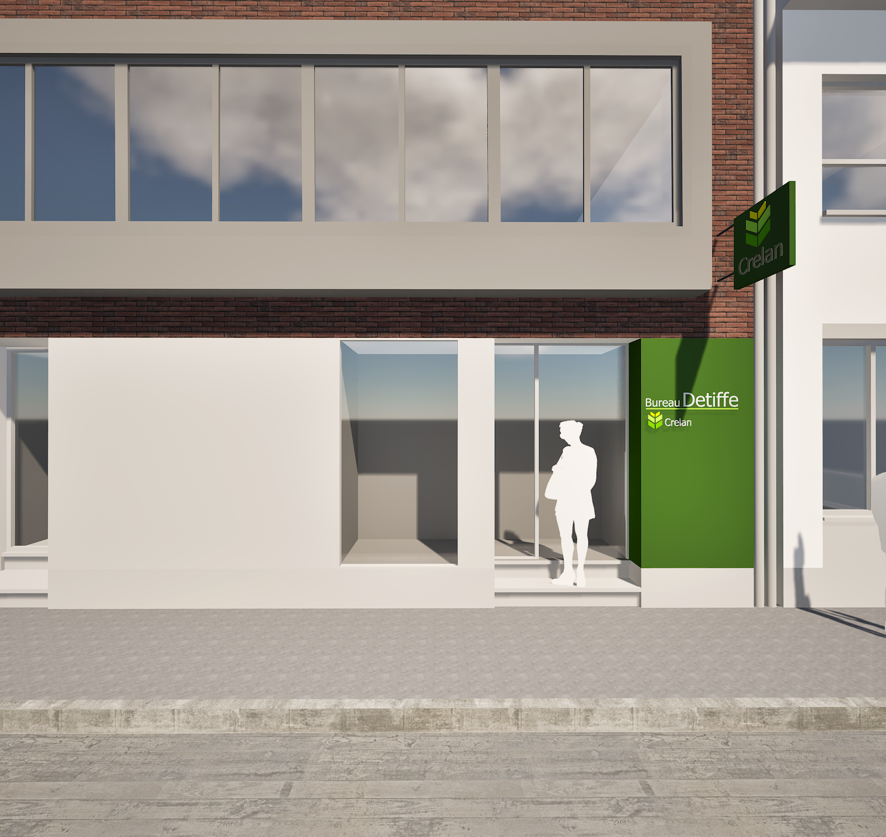 Le projet consiste en la transformation d'un immeuble composé d'une agence bancaire et d'un appartement. Au rez-de-chaussée, un nouveau guichet "Self-Banking" est aménagé et l'organisation de l'entrée est repensée. A l'étage, l'appartement existant est transformé afin de créer de nouveaux espaces bureaux.