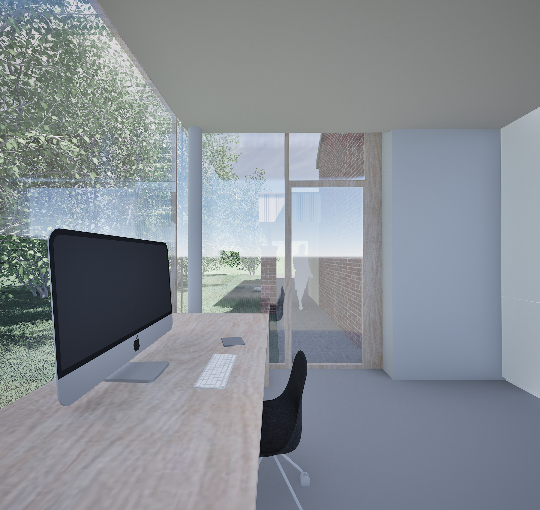 L’enjeu du projet était de créer un espace professionnel accueillant et adapté, tout en préservant l’intimité de la famille ainsi que les vues vers le jardin.