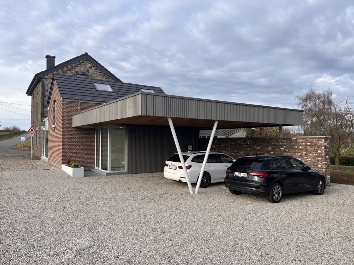 L’espace d’accueil, comprenant la salle d’attente, est directement relié à la zone de parking et au nouveau carport, facilitant l’accès des patients.