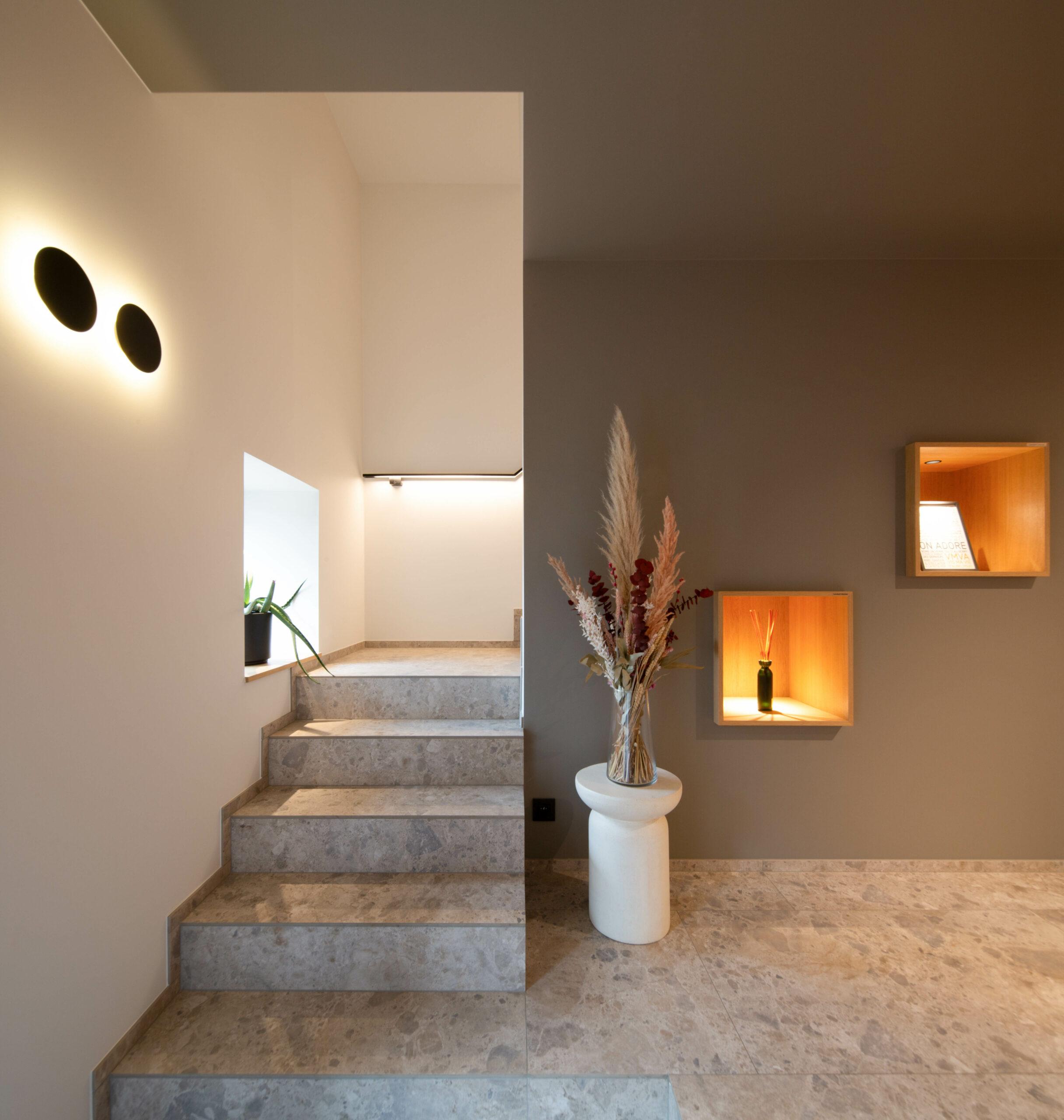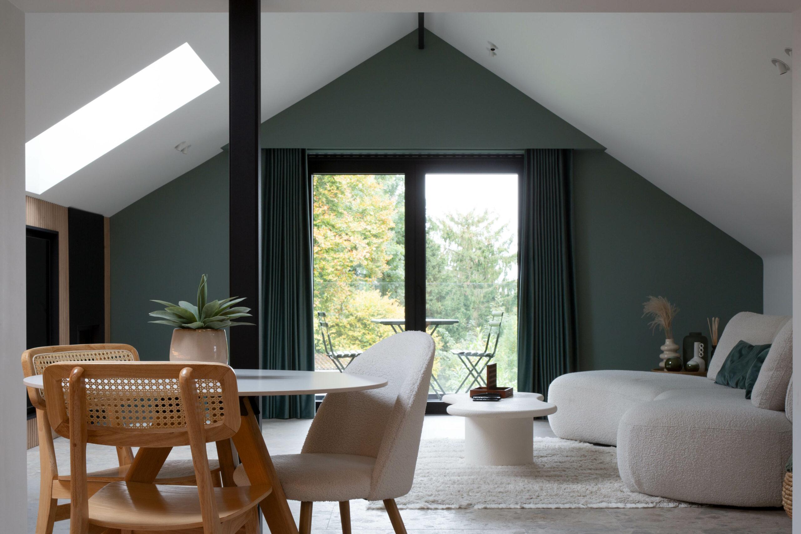 Les aménagements tirent parti du bâtiment existant pour créer des espaces lumineux, fonctionnels et propices à la détente.
